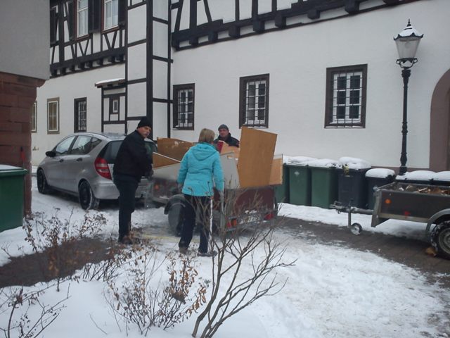 Auf diesem Wege möchte ich uns doch mal selber loben. Wir haben Freitagabend und Samstagvormittag so fleißig miteinander gerackert, geschleppt, verpackt und geschwitzt und geschnauft.